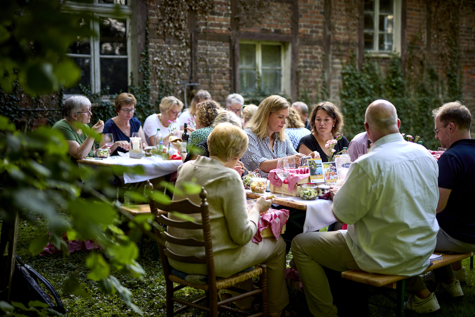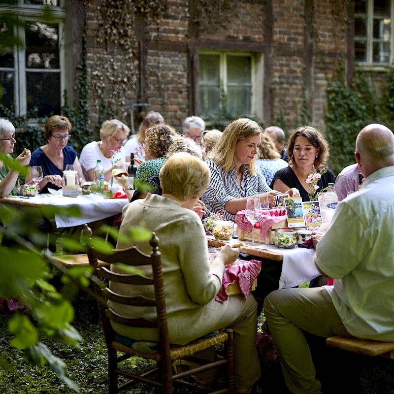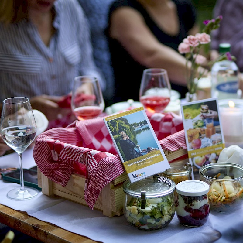 With the delicacies in the picnic boxes, you will drive to a beautifully situated picnic site with a film backdrop on an old, original farm in Münsterland, approx. 7 km from the FBS Dülmen. The hosts await you here and, after a brief introduction, you can enjoy the culinary delights in an idyllic setting. Let yourself be enchanted by the location and enjoy a relaxed picnic experience where gourmet delights, conviviality and a short journey into the past take centre stage.