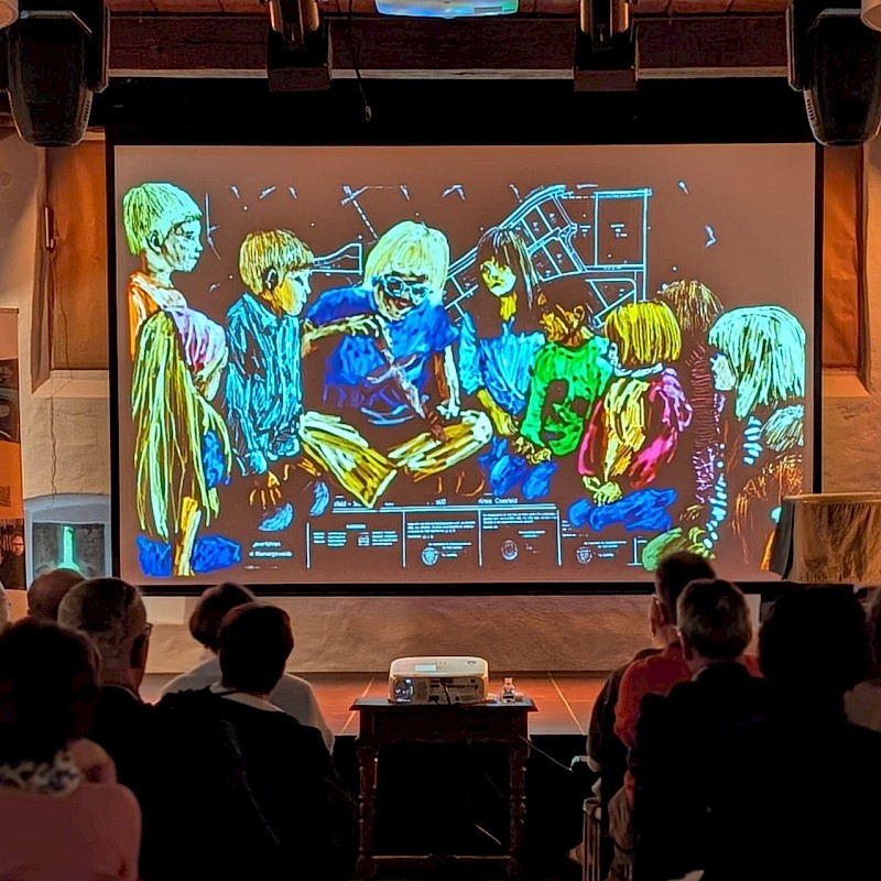 Nikola Dicke befragte Zeitzeuginnen und Zeitzeugen aus acht Orten im Kreis Coesfeld nach ihren persönlichen Erfahrungen mit der Gebietsreform. Ihre Geschichten verwandelte sie in Trickfilme mit Mixed-Media-Technik – kombiniert mit historischen Kreiskarten ihres Vaters, der Vermessungsingenieur beim Altkreis Lüdinghausen war. Bei öffentlichen Screenings und Erzählcafés in den acht Orten regten die Filme neue Gespräche an und wuchsen mit jeder Begegnung weiter. Zum Abschluss wurde die einzigartige filmische Kartographie der Gebietsreform in der Burg Vischering präsentiert.