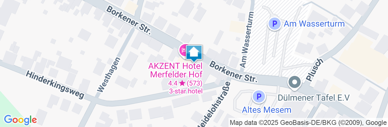 Zentral zwischen Stadtkern und Herzöglichem Wildpark von Dülmen liegt das familiengeführte AKZENT Hotel Merfelder Hof. Die Geschäfte der Innenstadt und der weitläufige Wildpark sind nur wenige Gehminuten entfernt.Nahe der holländischen Grenze, direkt an der 100 Schlösser Route finden Sie zahlreiche Sehenswürdigkeiten und den idealen Ausgangspunkt für Radtouren und Wanderungen. Erleben Sie die Wildpferde im Merfelder Bruch oder wandeln Sie auf den Pfaden von Anna Katharina Emmerick. Die Seenplatte von Haltern am See erreichen Sie genauso leicht, wie die hügelige Landschaft der Baumberge rund um Nottuln oder die Wälder des Naturparks Hohe Mark. Münster und das Ruhrgebiet sind nur jeweils 30 Minuten entfernt.