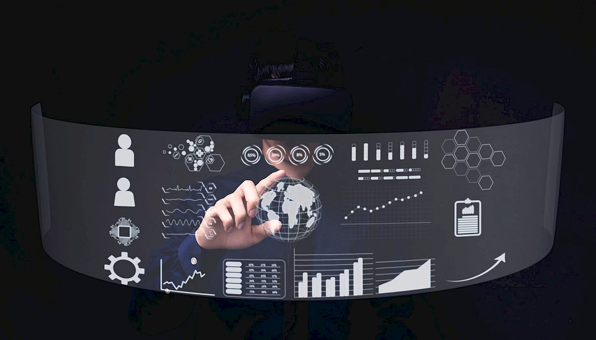 Virtuele Realiteit© https://www.vecteezy.com/photo/4639053-businessman-using-glasses-via-glasses-to-check-business-graph-vr-glasses-virtual-global