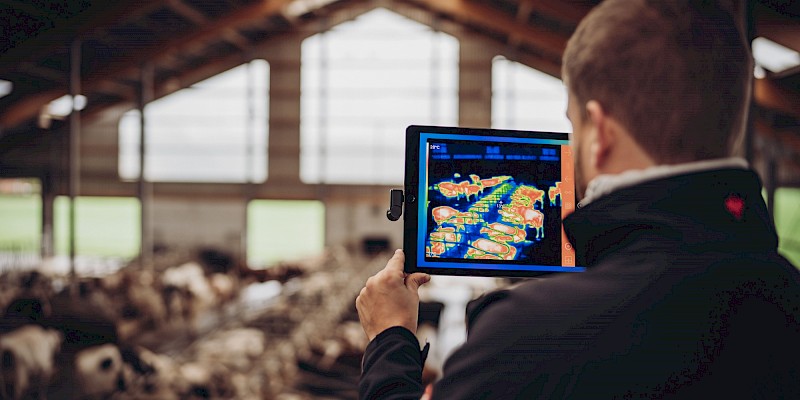 Zelfs koeien hebben het soms te warm, of ze halen hun neus op bij onaangename stalgeuren. Daarom is het van belang relevante gegevens te verzamelen om een optimaal stabiel klimaat te scheppen. Twee bedrijven uit Münsterland hebben een geavanceerd systeem ontwikkeld dat gebruik maakt van digitalisering en intelligente algoritmen om dierenwelzijn en efficiëntie met elkaar in overeenstemming te brengen.
