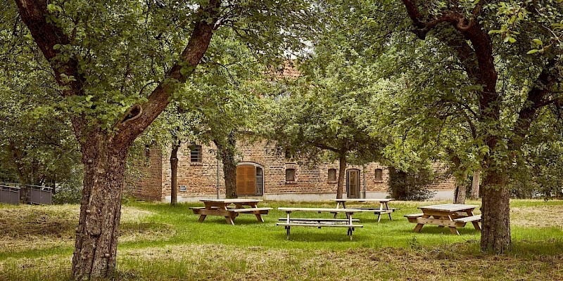In de zomermaanden (april - oktober) nodigt de fruitweide bij Haus Nottbeck je uit voor een gezellige picknick. In de juiste tijd van het jaar is snacken hier zelfs toegestaan en kun je je picknickmand vullen met vers fruit. Geniet van je picknick onder de fruitbomen en bestel je voorverpakte picknickmand.