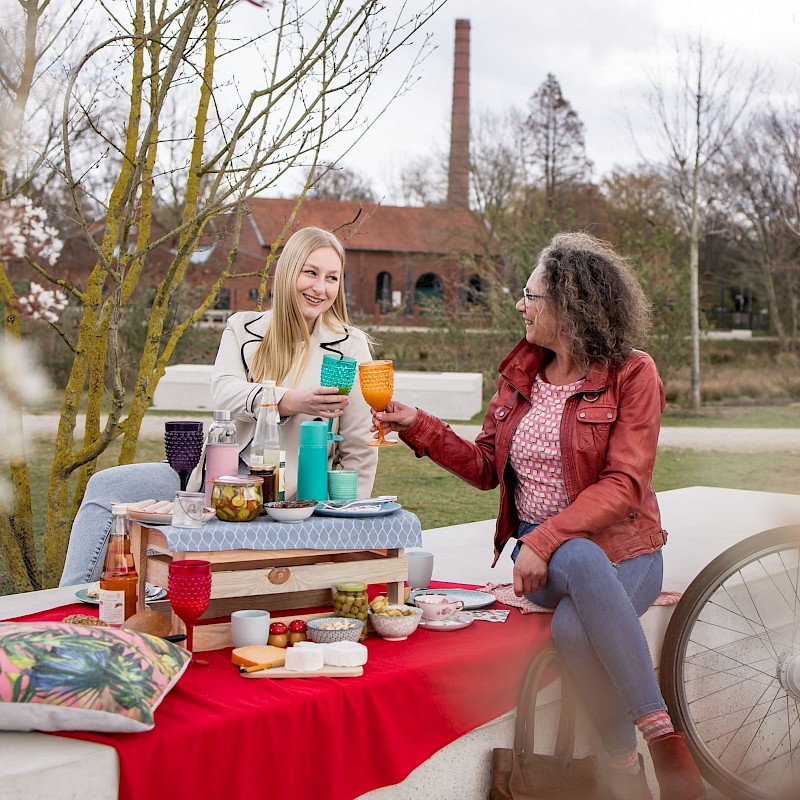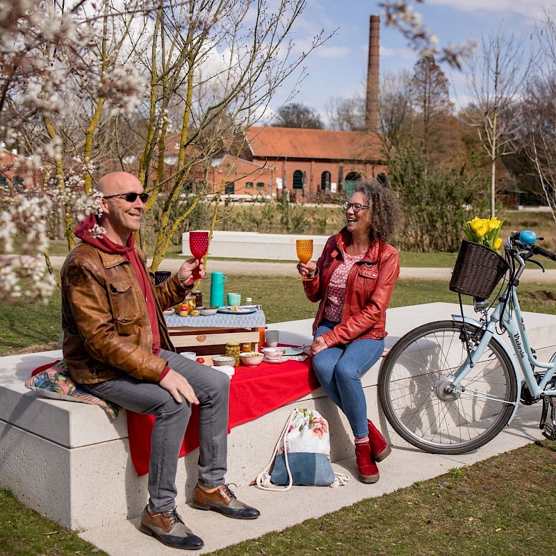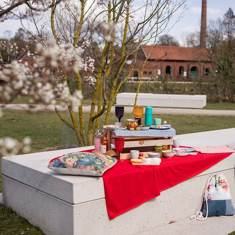 Een groene weide omringd door bomen, de rivier de Bocholter Aa en veel zitplaatsen maken dit plein de perfecte plek voor je stedelijke lentepicknick te midden van de industriële cultuur! Je kunt hier je culinaire pauze plannen op de betonnen zitjes te midden van het moderne kunst- en cultuurlandschap . De grootte van de betonnen zitjes biedt genoeg ruimte voor jou, je vrienden en je uitgebreide picknick!