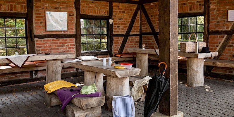 De liefdevol ingerichte schuilhut "Dirks" ligt in het centrum van de boerengemeenschap Brechte en is ideaal voor picknicks. Ideaal voor grote fiets- of wandelgroepen die gezellig buiten willen eten.