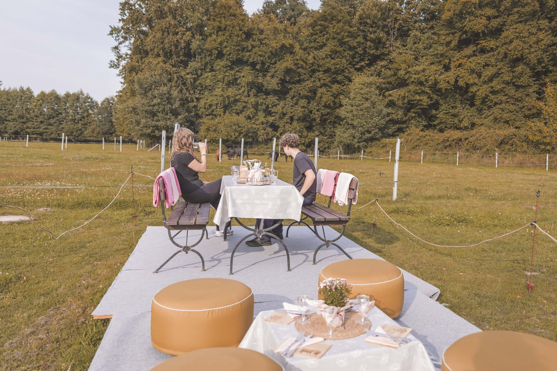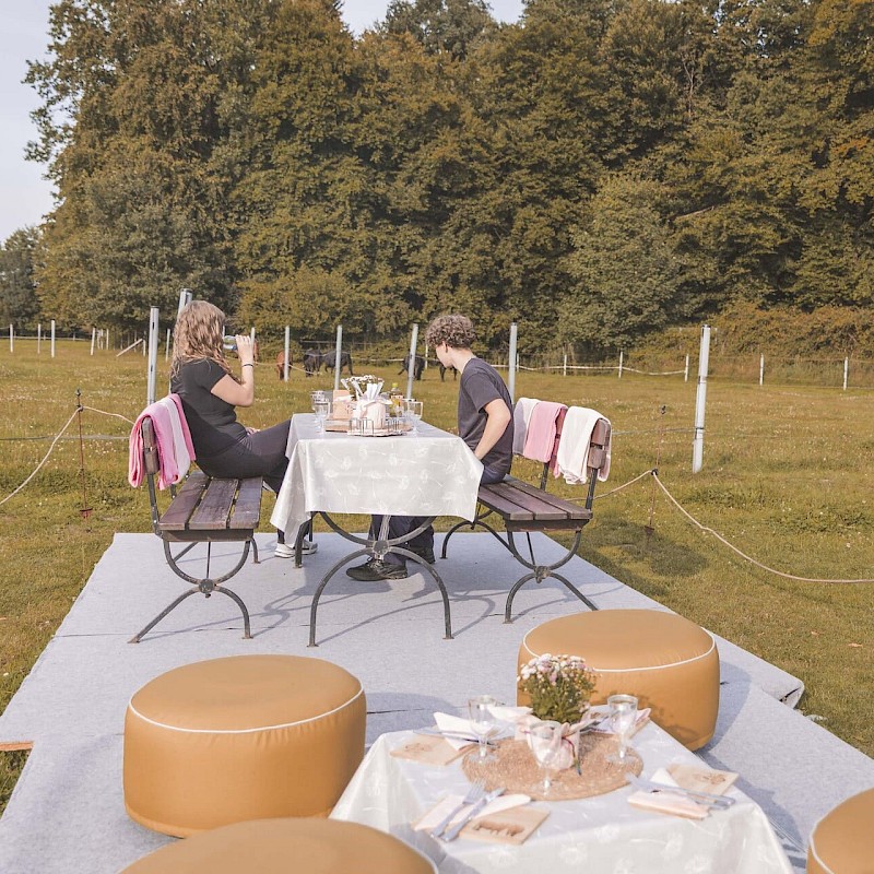 Na het knuffelen wacht er een met liefde bereide picknick op je! De picknick bestaat uit de populaire picknickbox (voor twee personen) van Dülmen Marketing e.V. en bevat regionale producten. Vegetarische opties op aanvraag. Alcoholvrije drankjes zijn ook verkrijgbaar.