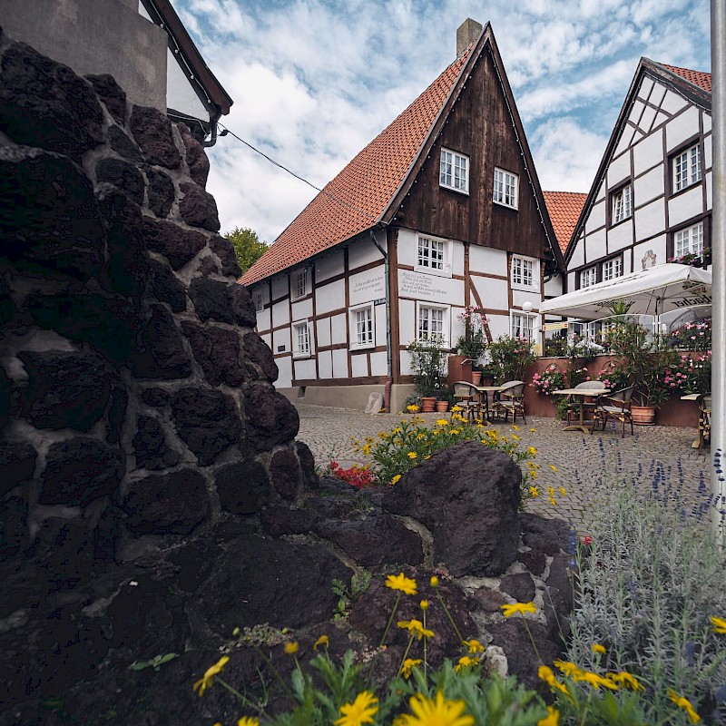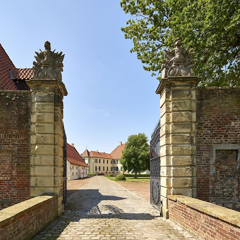 De route gaat verder naar de wijk Ostenfelde. Als je wilt, kun je een omweg maken naar het prachtige kasteel Vornholz of de ruïnes van kasteel Nienburg. Kasteel Vornholz is vandaag de dag nog steeds privébezit. Daarom is het niet mogelijk om het interieur te bezoeken.