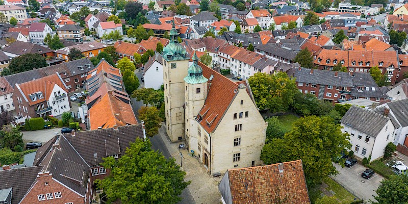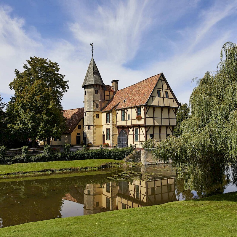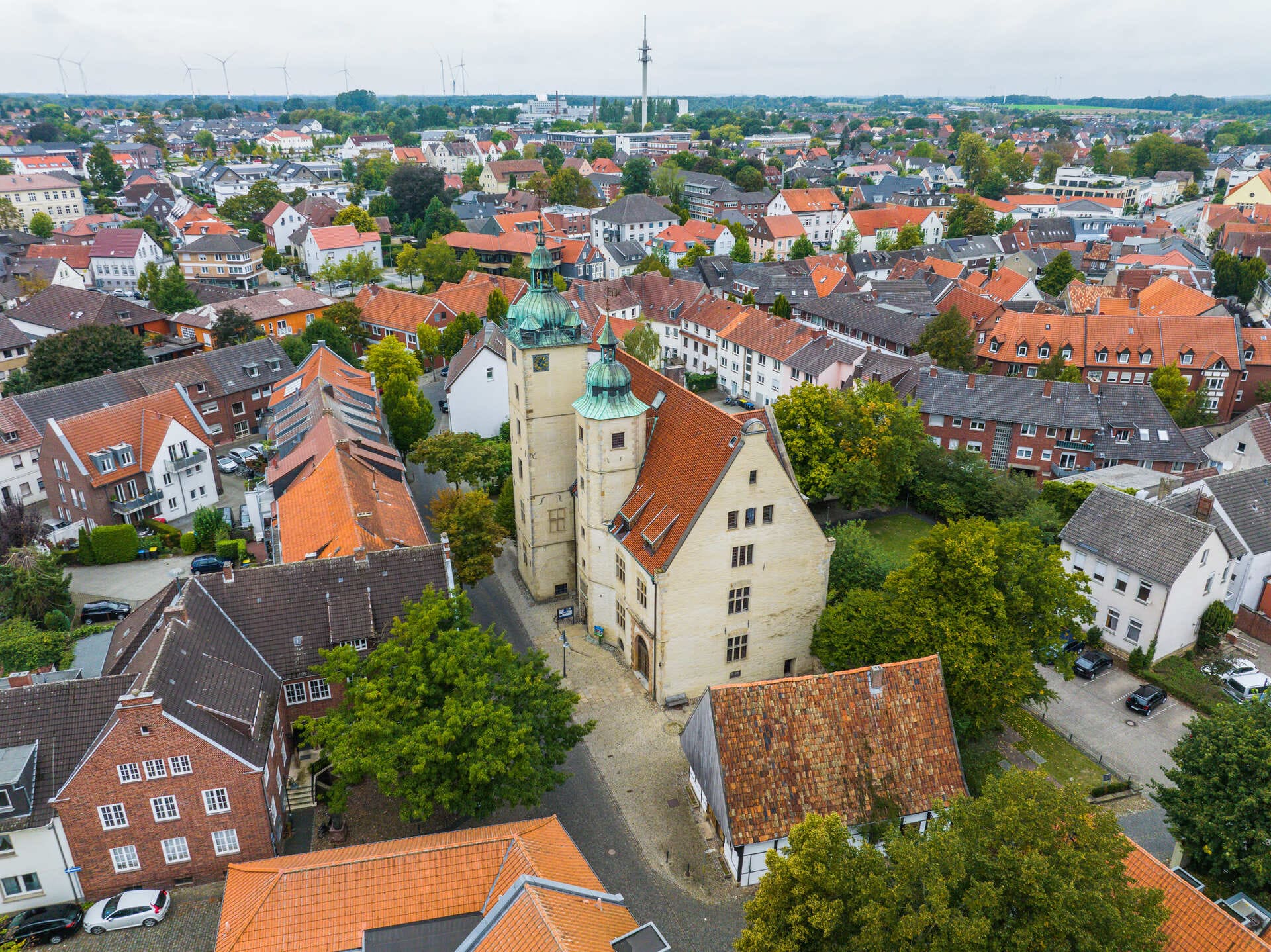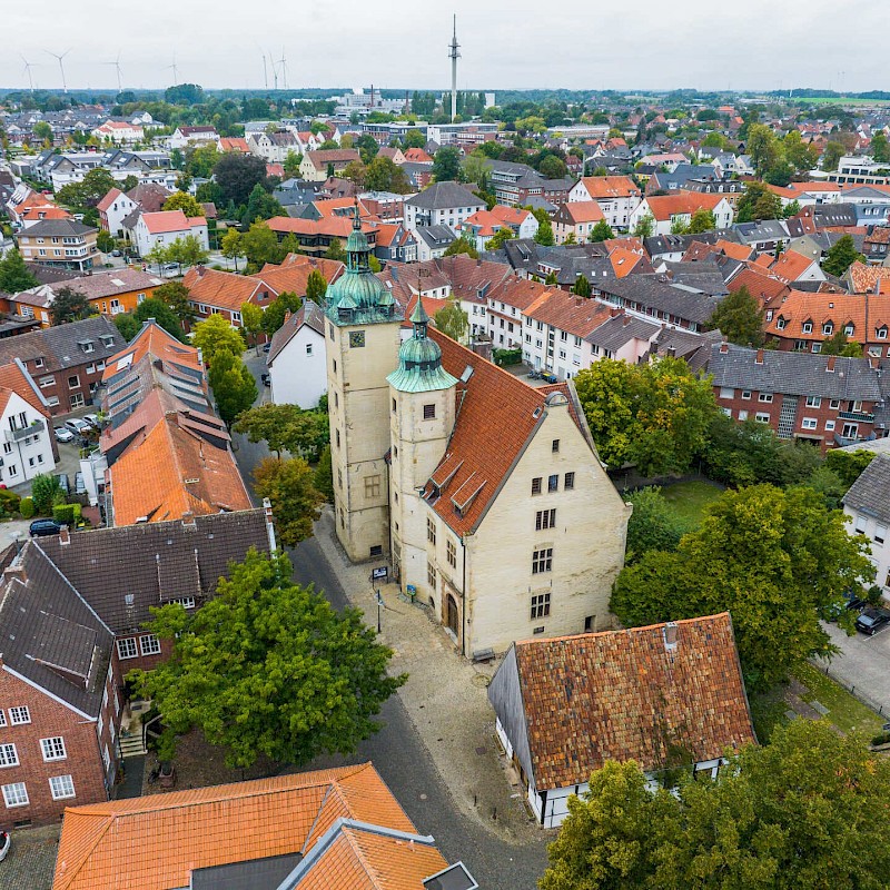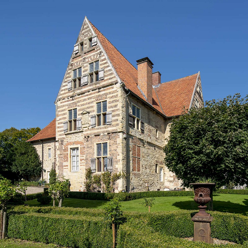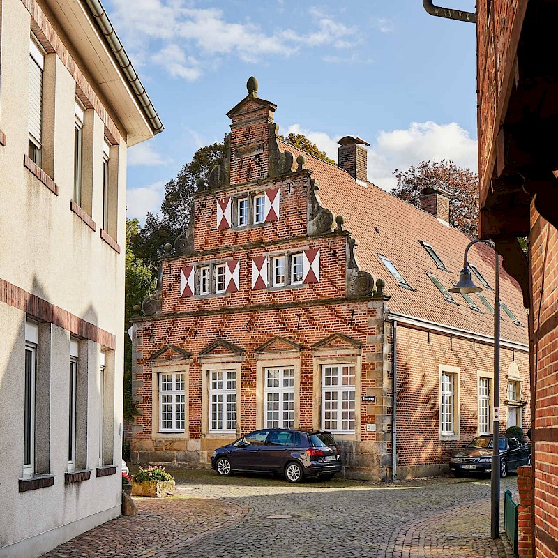 Dan gaat het verder: via Leer bereikt u Steinfurt, waar de educatieve tuin van het district u zal verrassen met zijn gevarieerde diversiteit. Gezellige cafés op het marktplein nodigen uit voor een aangename pauze. De waterburcht in Steinfurt is een indrukwekkend hoogtepunt van deze tocht.