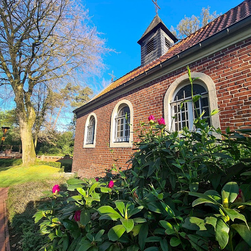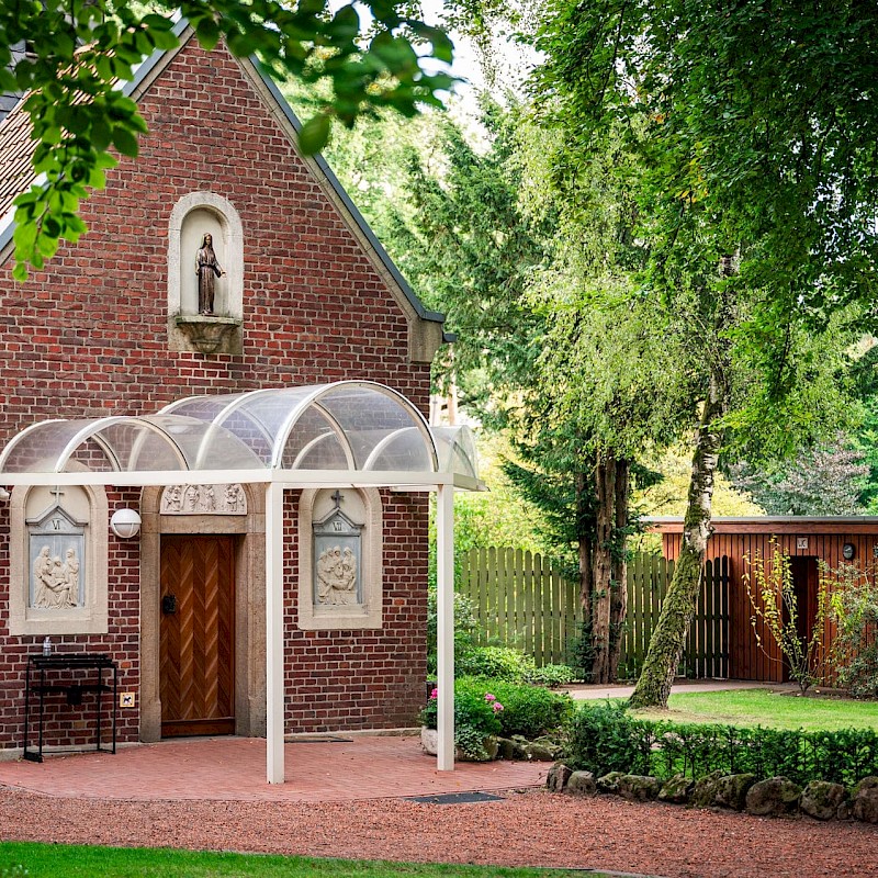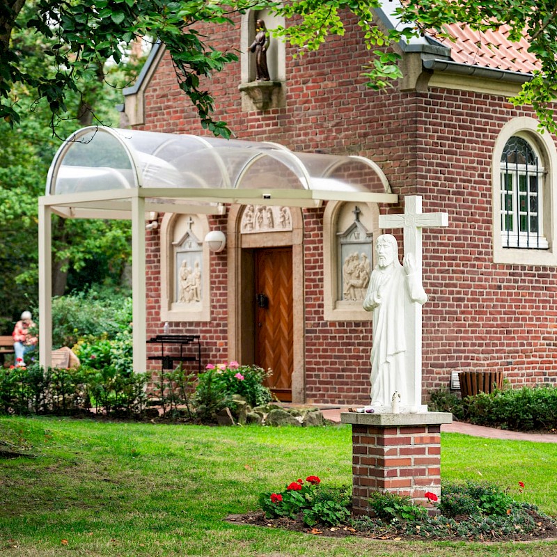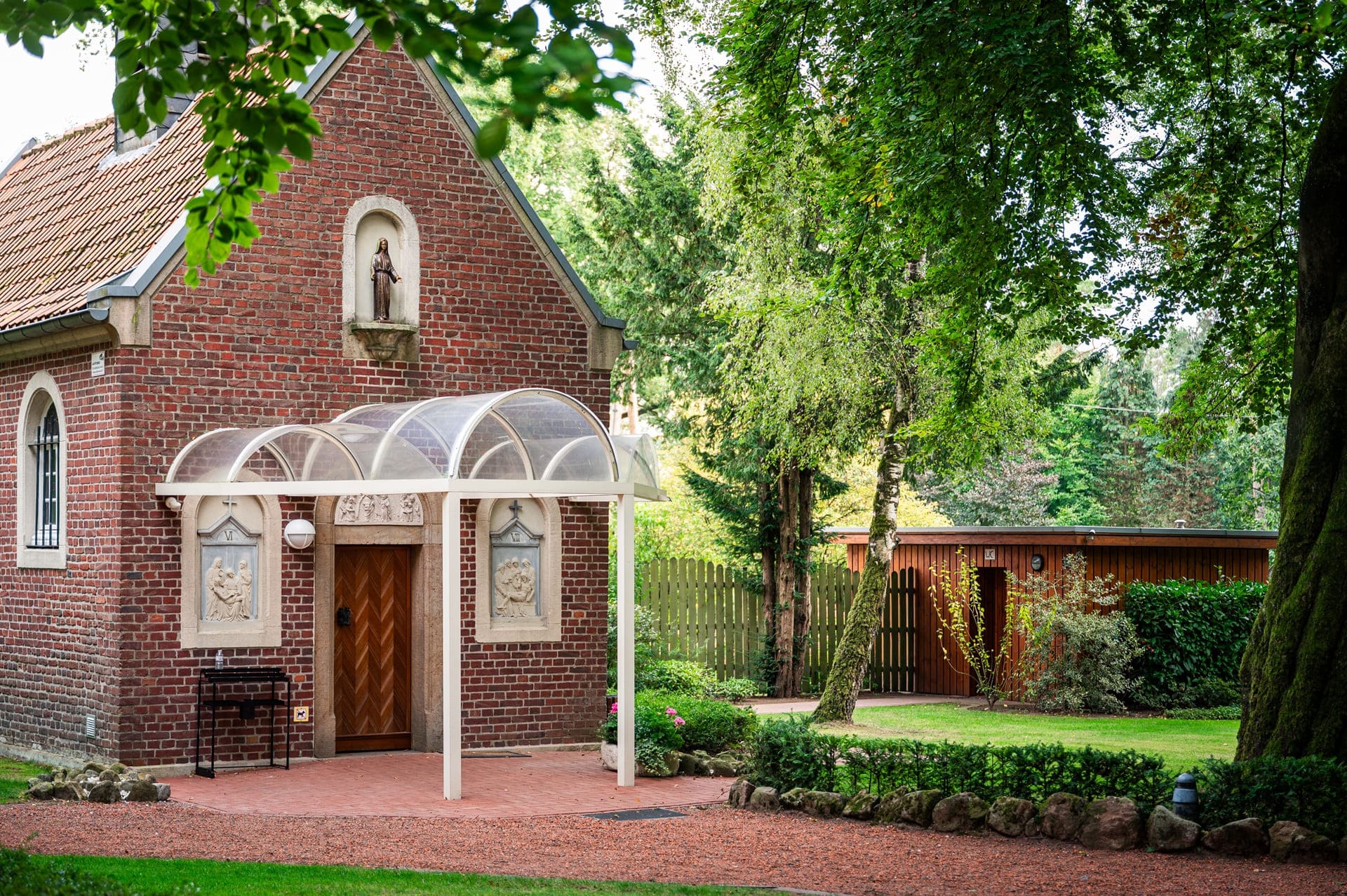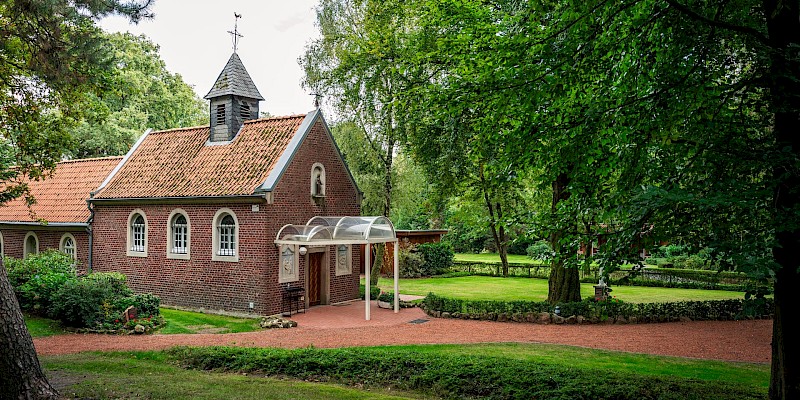 Als je vanaf de wandelparkeerplaats of de bushalte door het weelderige groene bos loopt, kom je al na een paar minuten lopen een echte insidertip in het Münsterland tegen. Verscholen in de zacht glooiende heuvels van het natuurpark Hohe Mark ligt de boskapel Reken - een plek die geschiedenis, spiritualiteit en natuur harmonieus combineert. Hier werd in de 17e eeuw een kleine kapel gebouwd nadat een herder onder een rozenstruik een bron ontdekte waarvan het water hem genezing bracht. Deze gebeurtenis markeerde het begin van de Mariadevotie op deze plek. De kapel, gewijd aan de Verdrietige Moeder van God, herbergt een Pietà uit de 16e/17e eeuw. Dit kunstwerk, oorspronkelijk afkomstig uit de kerk St Lamberti in Coesfeld, werd in 1782 door broeder Antonius Fischer aangekocht voor de boskapel. Tot 1879 woonden hier kluizenaars die de kapel verzorgden.