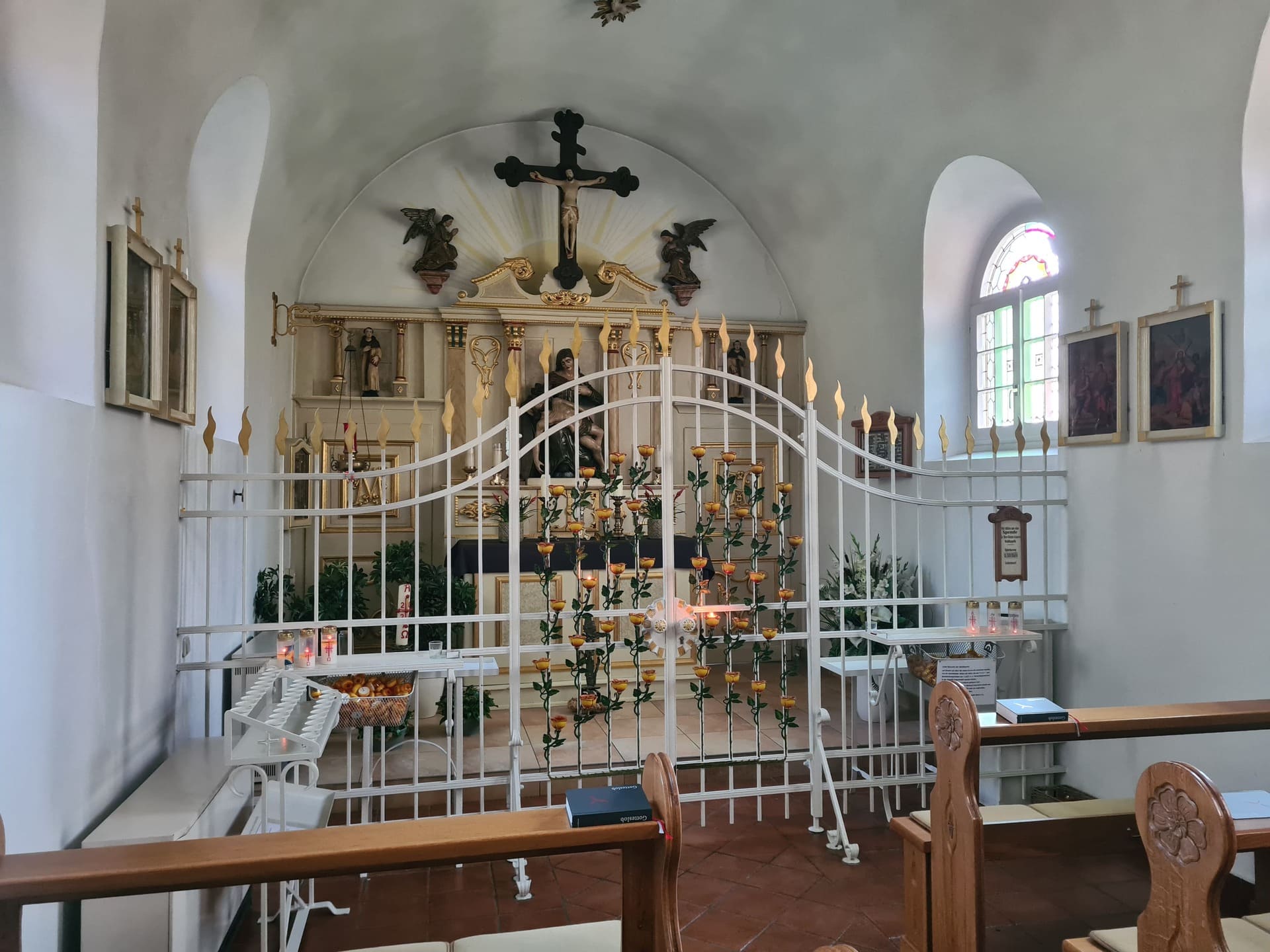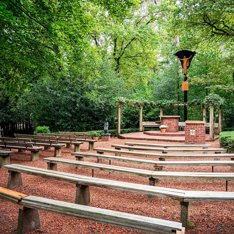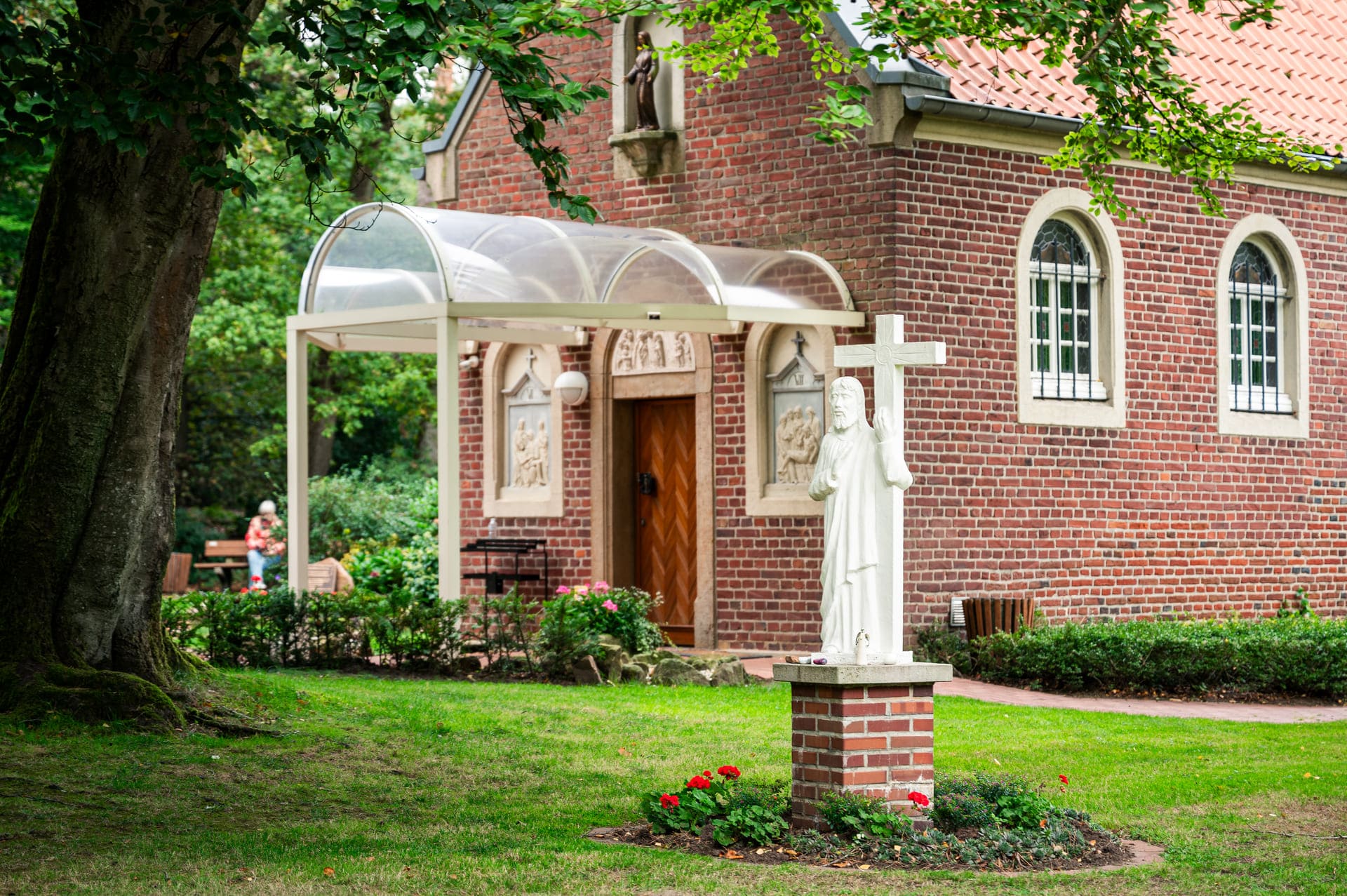 Als je vanaf de wandelparkeerplaats of de bushalte door het weelderige groene bos loopt, kom je al na een paar minuten lopen een echte insidertip in het Münsterland tegen. Verscholen in de zacht glooiende heuvels van het natuurpark Hohe Mark ligt de boskapel Reken - een plek die geschiedenis, spiritualiteit en natuur harmonieus combineert. Hier werd in de 17e eeuw een kleine kapel gebouwd nadat een herder onder een rozenstruik een bron ontdekte waarvan het water hem genezing bracht. Deze gebeurtenis markeerde het begin van de Mariadevotie op deze plek. De kapel, gewijd aan de Verdrietige Moeder van God, herbergt een Pietà uit de 16e/17e eeuw. Dit kunstwerk, oorspronkelijk afkomstig uit de kerk St Lamberti in Coesfeld, werd in 1782 door broeder Antonius Fischer aangekocht voor de boskapel. Tot 1879 woonden hier kluizenaars die de kapel verzorgden.