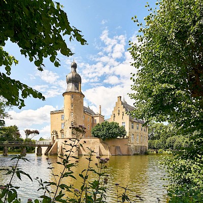 Kastelen, waterburchten, een historische stropdas-tuin en wilde paarden - deze fietstocht heeft alles te bieden wat de moeite waard is in de omgeving van Reken. Fiets door de prachtige natuur en neem voldoende tijd in gezellige cafés met uitzicht op historische muren, glinsterende slotgrachten en eeuwenoude bomen. Combineer uw verblijf in Reken met een bezoek aan de wilde paarden in de Merfelder Bruch. De aanblik van de elegante dieren in het wild zal nog lang in uw geheugen gegrift blijven.