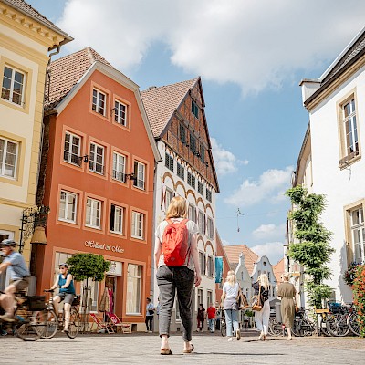 Geniet van de charme en gastvrijheid van de historische binnenstad van Warendorf tijdens een ontspannen wandeling door de kronkelige steegjes. Het toeristenbureau van Warendorf adviseert u graag over het verlengen van uw verblijf en/of het huren van fietsen.