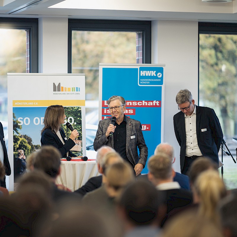 „Das Handwerk spielt bei der Beratung und Umsetzung der Wärmewende eine Schlüsselrolle. Nur mit dem Handwerk kann nachhaltiges Leben und Wirtschaften in der Region gelingen. Diese Chancen sollten von der Politik, aber auch von der Gesellschaft, noch stärker erkannt werden. Das Handwerk braucht aber Fachkräfte, damit es dieses Potential entfalten kann. Mehr Wertschätzung für die berufliche Bildung ist daher angebracht“, unterstrich Hans Hund, Präsident der Handwerkskammer Münster.