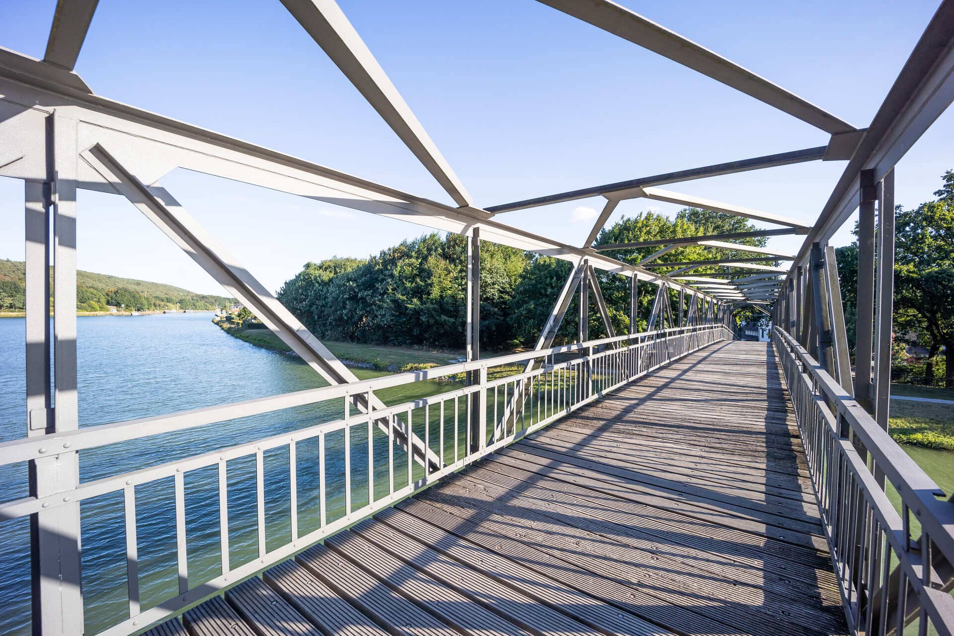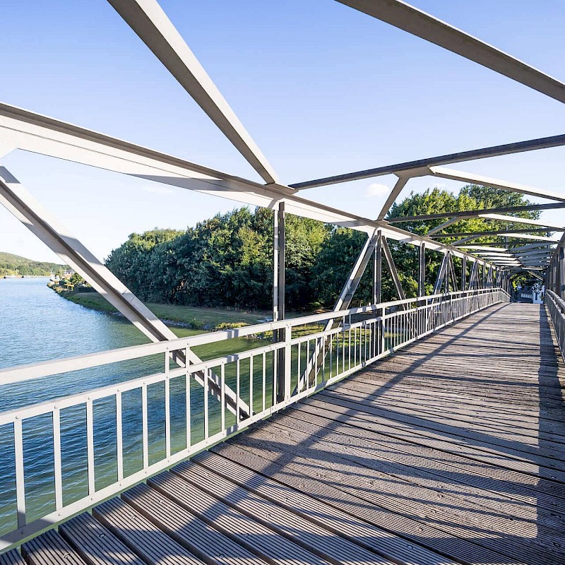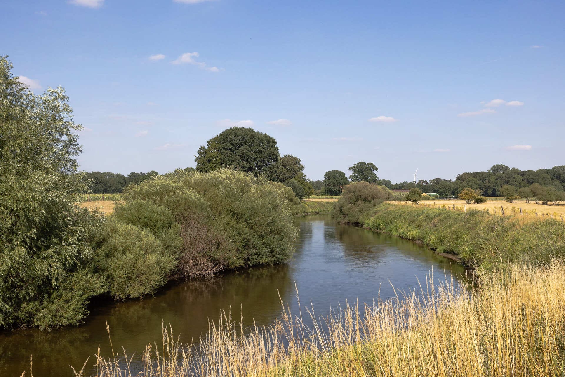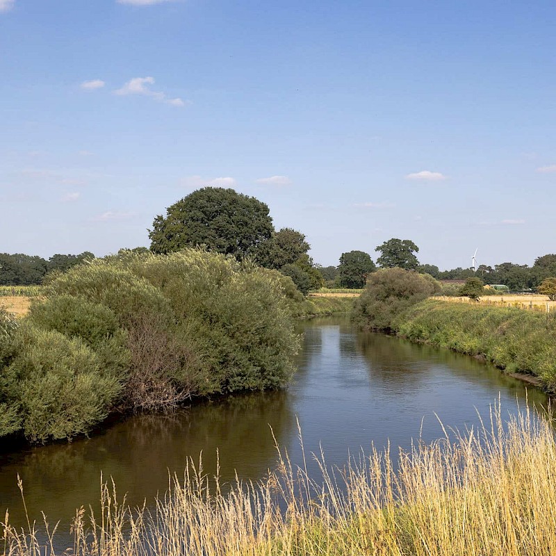 Es geht zunächst Richtung Hörstel. Hier sind die Surenburg und das DA, Kunsthaus Kloster Gravenhorst, die mit ihrer Schönheit verzaubern, einen Besuch wert. Wer sich für zeitgenössische Kunst interessiert, sollte unbedingt einen Abstecher in das DA einplanen. Zwischen den beiden Bauwerken kannst du noch die Aussicht vom „Nassen Dreieck“ genießen – ein Wasserstraßendreieck und wichtiger Knotenpunkt für die Binnenschifffahrt.