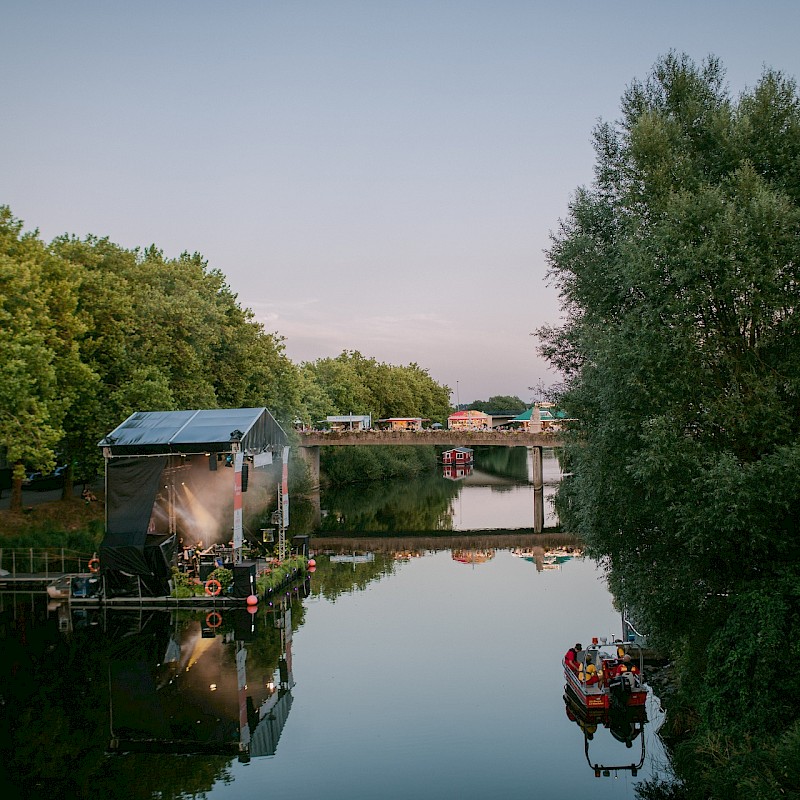 Jeden Sommer wird die schwimmende Bühne am Emsufer für vier Tage zum Mittelpunkt der Stadt Rheine. Hier erwartet die Zuschauerinnen und Zuschauer ein abwechslungsreiches Programm aus exklusiven Liveshows. Gespielt wird Musik aus verschiedenen Jahrzehnten und Stilrichtung. Die schwimmende Bühne auf der Ems ist etwas ganz Besonderes und einzigartig in Europa. Sonst nirgendwo gibt es eine Showbühne auf einem fließenden Gewässer. Diese magische Atmosphäre unter freiem Himmel direkt an der Ems verleiht dem Festival neben der guten Musik einen unvergesslichen Charme. Vom 23. bis zum 26. Juli 2026 findet das EmsFestival bereits zum 24. Mal statt!