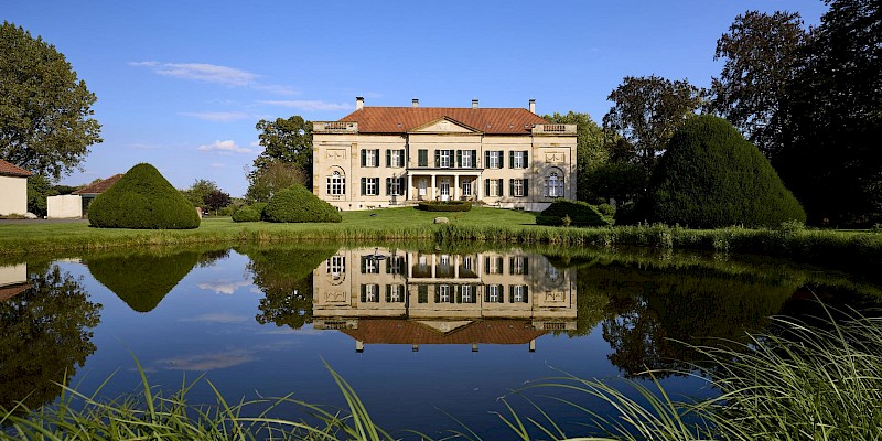 Gut 50 Jahre später erfolgte der Abriss des westlichen Flügels der ursprünglichen Anlage. Hier ließen Anton Friedrich und Rosine von Korff einen "jungen Wilden" ans Werk, der sich mit dem Bau endgültig einen Namen machen konnte: Mit Adolph von Vagedes begann der Neubau des heutigen klassizistischen Herrenhauses.