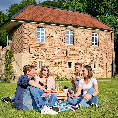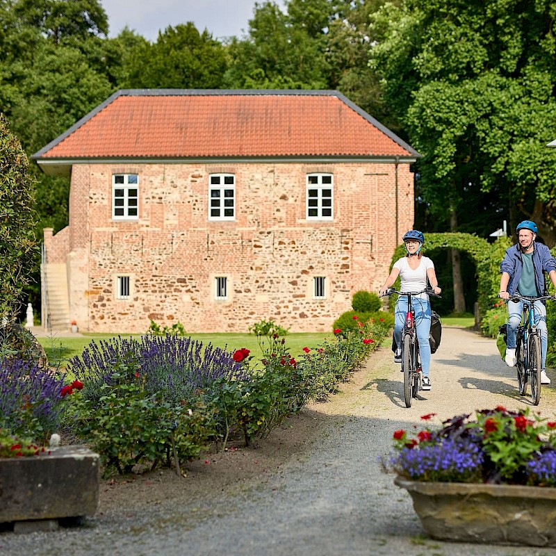 Schloss Sythen in Haltern am See ist eine typisch westfälische Burganlage: Historische Backsteingewölbe, rosenumwachsene Mauern, ein knarrendes Holzportal am Torhaus mit der alten Backsteinfassade und die urige kleine Kapelle verleihen der über tausend Jahre alten Wasserschloss-Anlage einen ganz besonderen Charme. Und doch fehlt ein entscheidenes Detail: das Schloss.