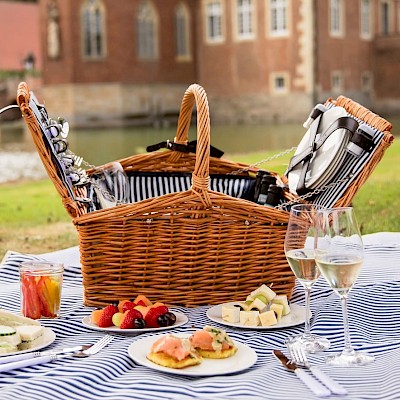 Der landschaftlich liebevoll gestaltete Park mit seinen Rhododendronbüschen und Hortensien unterteilt sich in verschiedene Teilbereiche, die perfekt zum Picknicken geeignet sind. Daher bietet sich dieser besondere Ort vor allem für ein romantisches Picknick an. Dichterin Annette von Droste-Hülshoff, die hier gelebt hat, hätte es sicherlich gefreut.