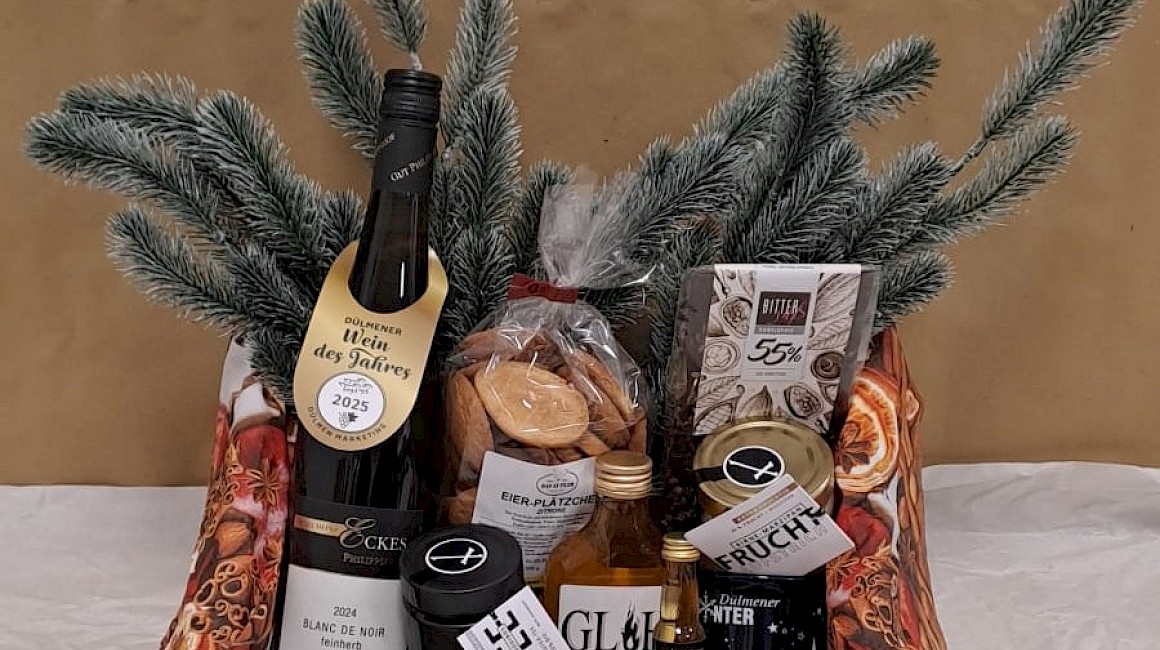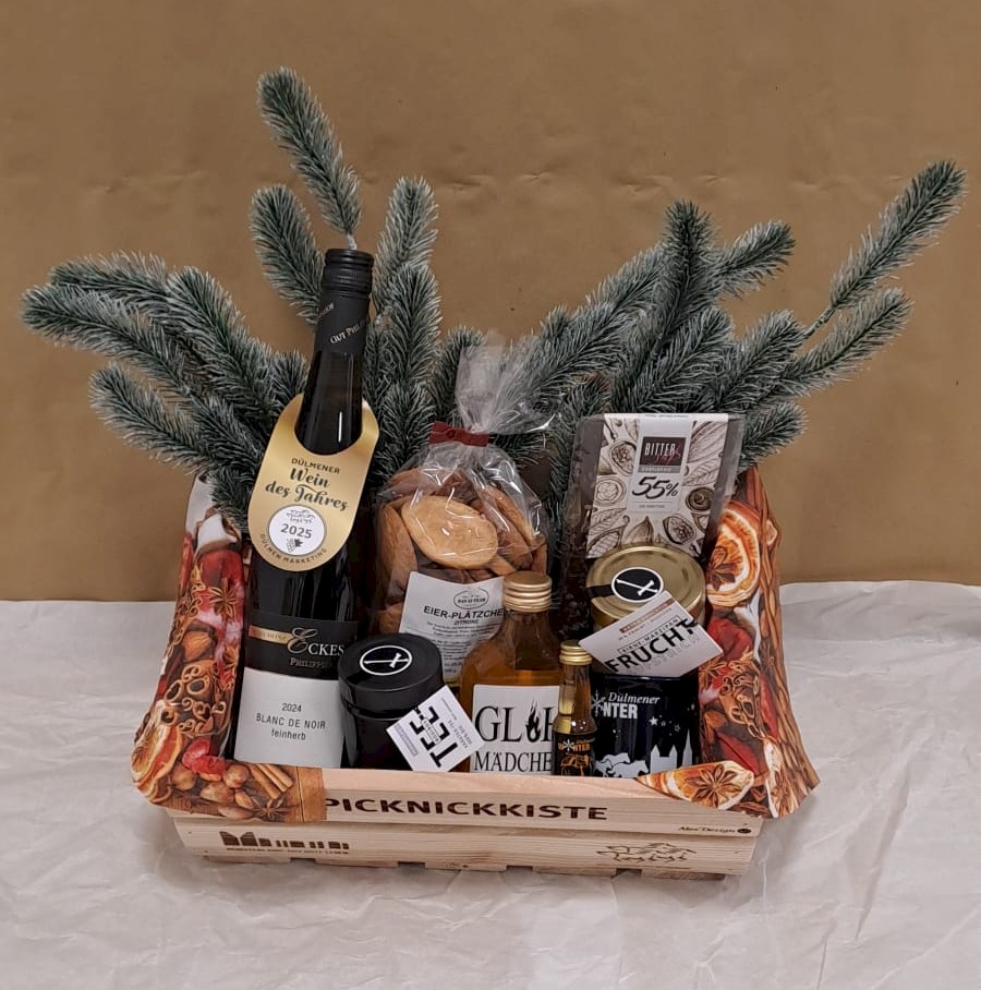 Verschenke Picknick-Freude aus Dülmen und unterstütze den lokalen Handel! Dülmen Marketing nimmt an der Aktion "Verschenke ein Picknick" im Münsterland teil und bietet in der Adventszeit eine gefüllte Picknickkiste zum Kauf an. Entdecke darin viele Köstlichkeiten von regionalen Betrieben und andere tolle, heimatverbundene Artikel, welche die Beschenkte oder den Beschenkten erfreuen werden.