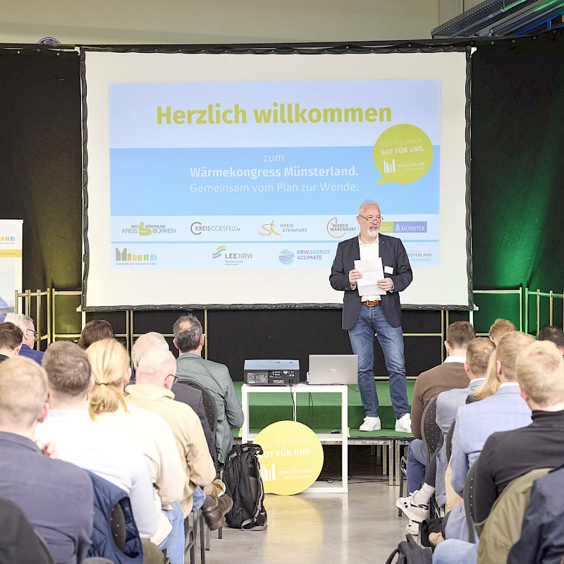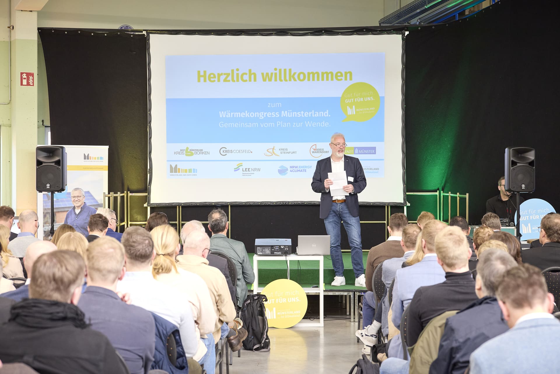 Der erste „Wärmekongress Münsterland“, der am 3. April 2025 auf dem maakwi Campus in Heek stattfand, drehte sich rund um den Einsatz erneuerbarer Energien und die Steigerung der Energieeffizienz. Mehr als 150 Fachkräfte aus Kommunen und Unternehmen sprachen über Maßnahmen und lernten erfolgreiche Praxisbeispiele aus der Region kennen. Zur Veranstaltung eingeladen hatten die vom Münsterland e.V. und der Landesgesellschaft NRW.Energy4Climate koordinierte Initiative „Münsterland ist Klimaland“ und der Landesverband Erneuerbare Energien NRW (LEE NRW).